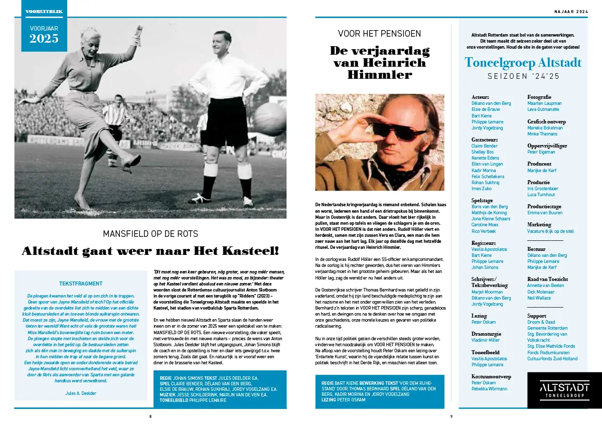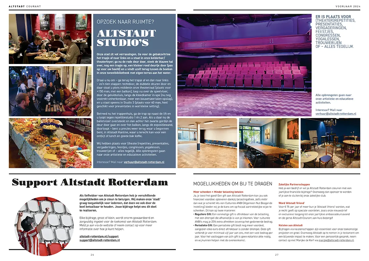 Twee keer per jaar het allerlaatste nieuws uit historisch Delfshaven; theater, ontbijt, lunch, toneelschool en verhuring.