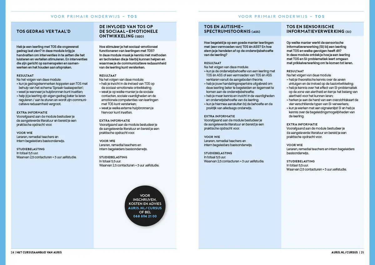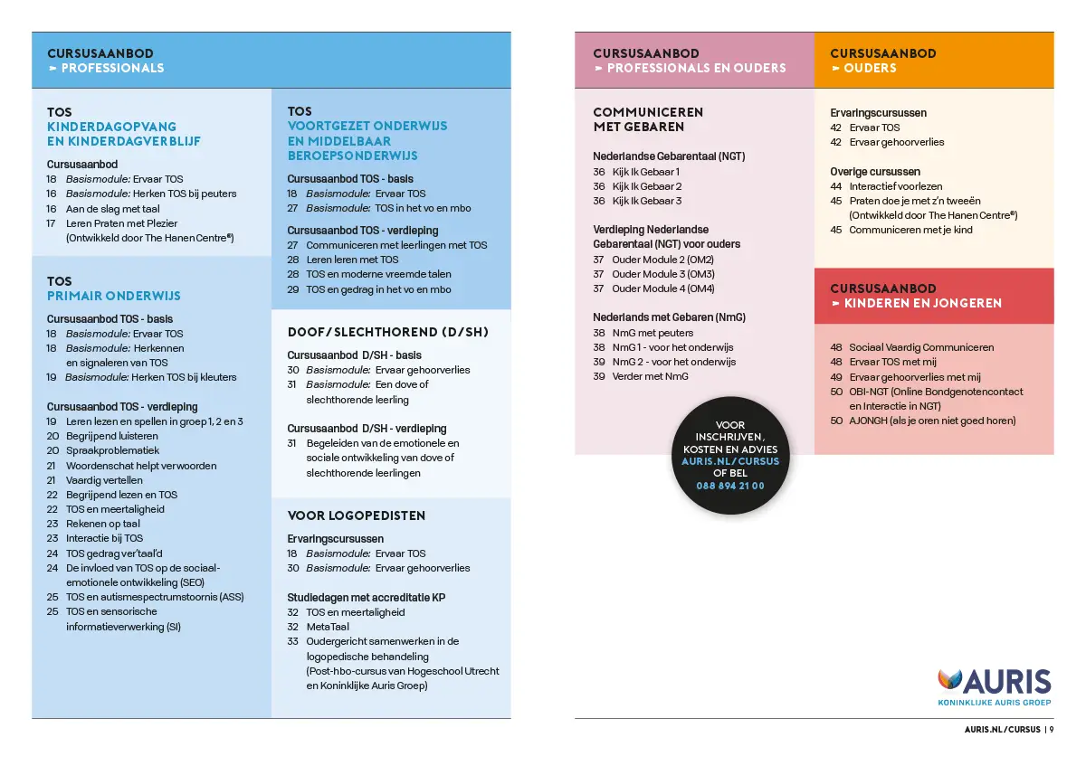 Het gehele cursusaanbod op een een rij. Overzichtelijk door de vier doelgroepen een eigen kleur te geven.