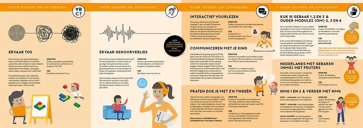 Naast de gids ook een folder voor ouders, jongeren en kinderen in begrijpelijke taal (A1) ondersteund door illustraties.