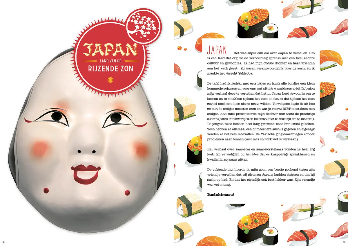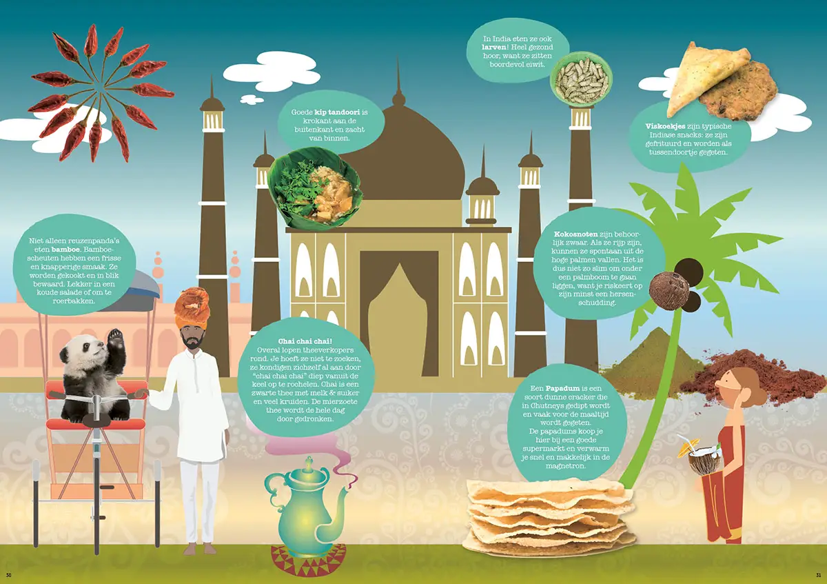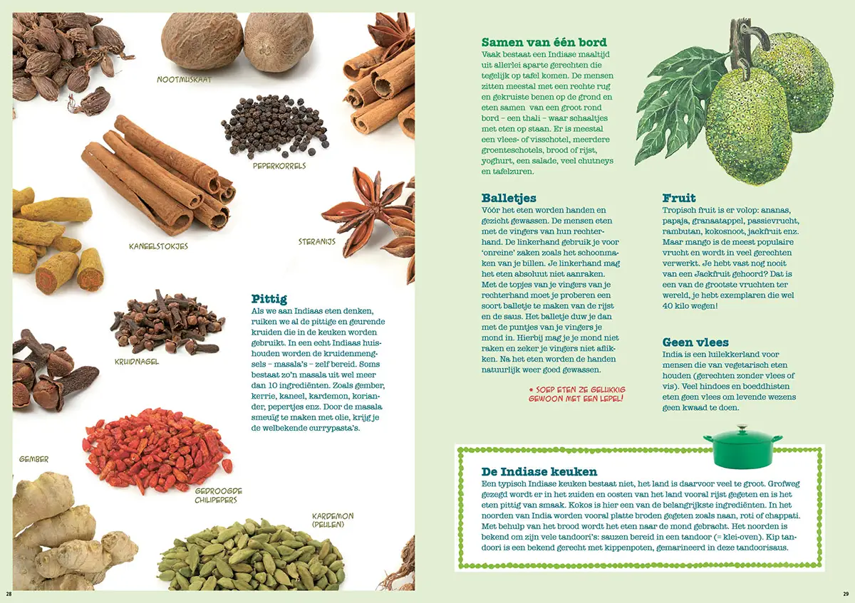 Een boek met een los receptenschrift, paspoorten en landenstickers. Met korte verhalen en leuke wist-u-datjes over landen met de bijbehorende gerechten en eetcultuur. Zo gaan kinderen eerder proeven van gerechten die ze niet kennen.